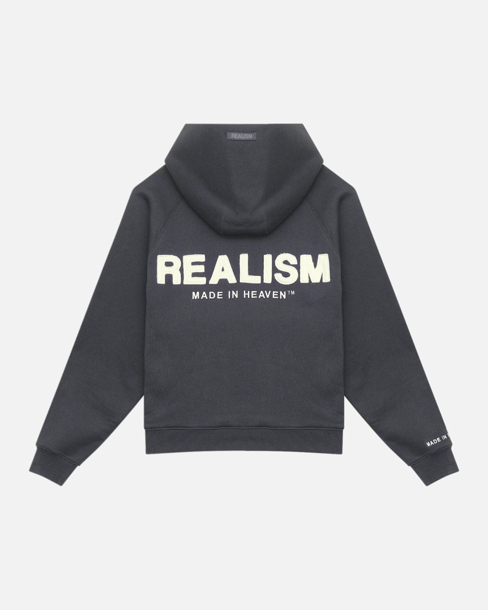 The Legacy Series represents the next evolution of Realism's design identity. Made with Realism's signature comfy fleece in a Black guise. This hoodie features distressed patch work including the “R” on chest and “REALISM” on back. Custom metal accents and silicon applique logo on the hood help bring together the design.