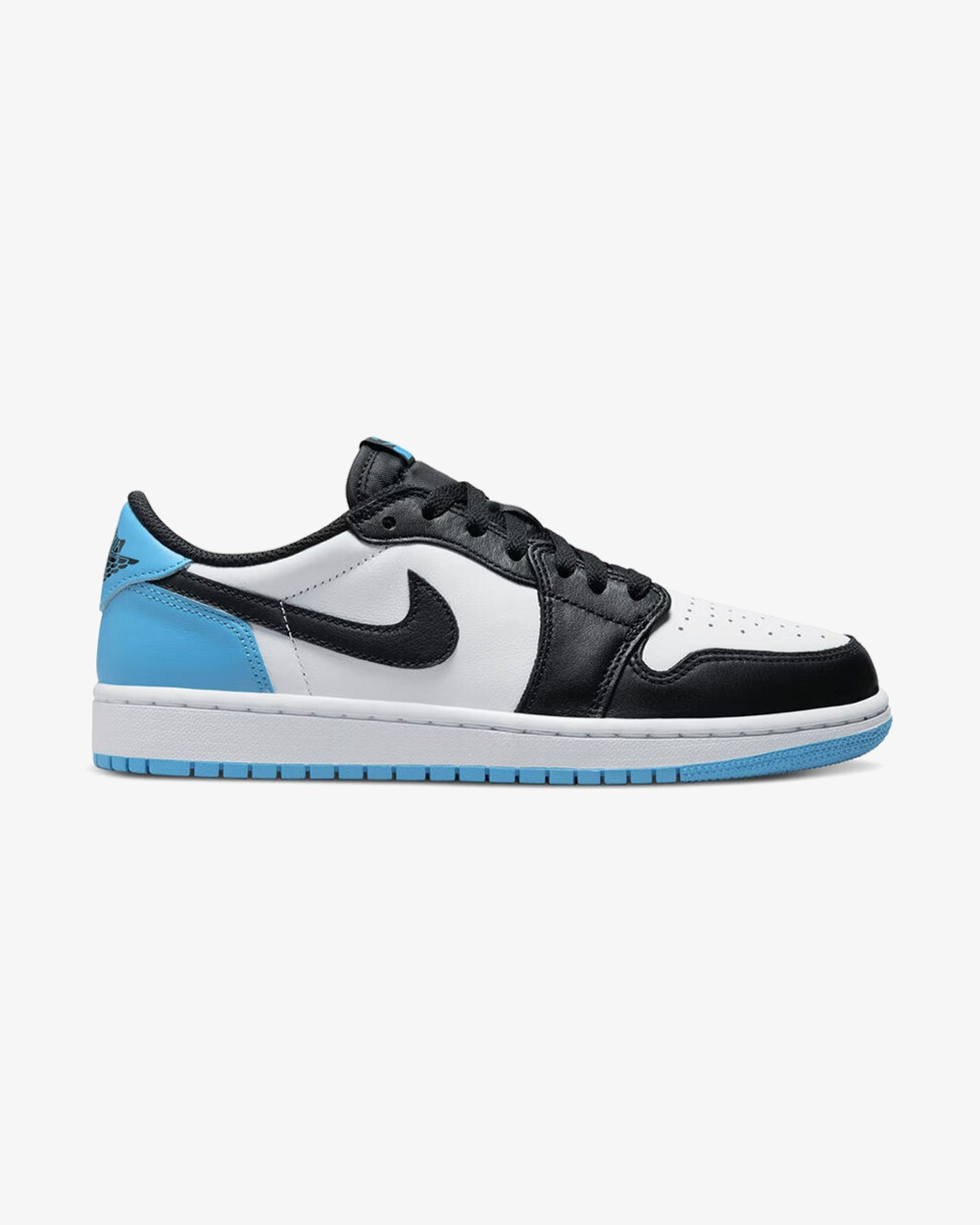 The Air Jordan 1 Retro Low OG ‘UNC’ continues a tradition of classic Jordan models draped in colors that pay homage to Michael Jordan’s alma mater. This pair utilizes a leather upper that combines a white base with contrasting black accents on the forefoot overlay and signature Swoosh. The heel panel is finished in Dark Powder Blue, matching the rubber outsole and woven Nike Air tongue tag. A retro Wings logo on the heel tab maintains the shoe’s OG aesthetic.
