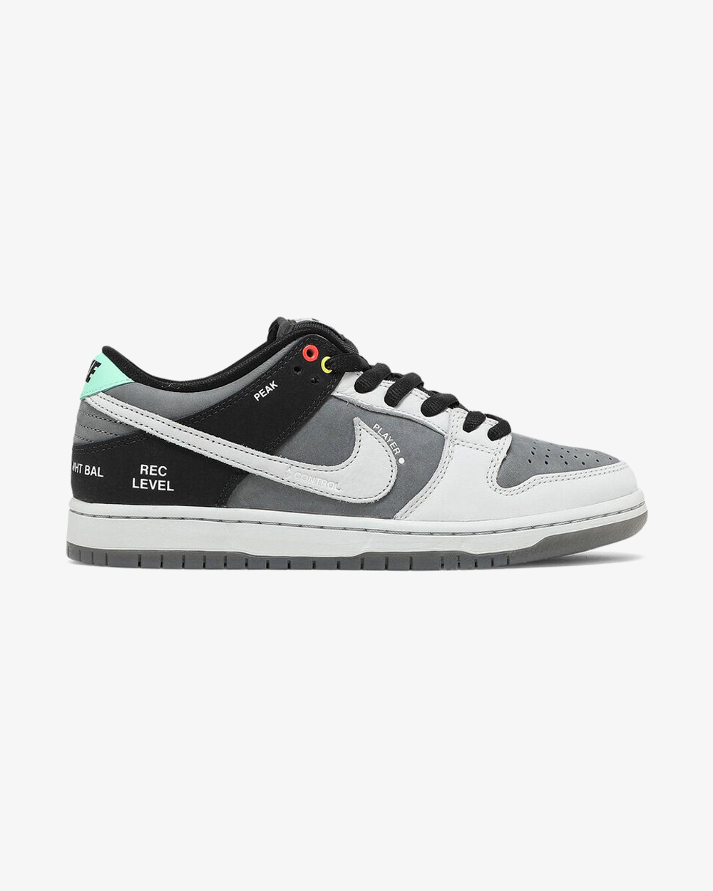 The Nike Dunk Low SB ‘Camcorder’ takes inspiration from an iconic piece of equipment that was instrumental in the proliferation of skate videos in the ‘90s: the Sony DCR VX1000 camcorder. The low-top makes use of a charcoal nubuck upper, accented with a lighter shade of grey on the forefoot overlay and signature Swoosh. The black synthetic leather heel overlay is embellished with a series of camcorder functions, including ‘SHUTTER SPEED’ and ‘REC LEVEL.’ Red and yellow eyelets, along with a mint green heel tab, add subtle pops of color to the neutral color scheme.