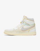 The Union LA x Bephie’s Beauty Supply x Air Jordan 1 Retro High OG SP 'Summer of '96' delivers a three-way collaboration that reunites Jordan Brand with Chris Gibbs and Beth Birkett Gibbs. Their unique take on the iconic silhouette features a white leather upper with exposed green stitching, a pale grey Swoosh and woven detailing that recalls the Nike Air Footscape Woven. Yellow trim outlines the shoe’s classic lines, matching the laces and the discreet ‘UN/LA’ label that adorns the lateral ankle. Additional branding elements include a woven Nike Air tongue tag and a tonal Wings logo stamped on the collar flap. A vintage pre-yellowed finish is applied to the durable rubber cupsole.