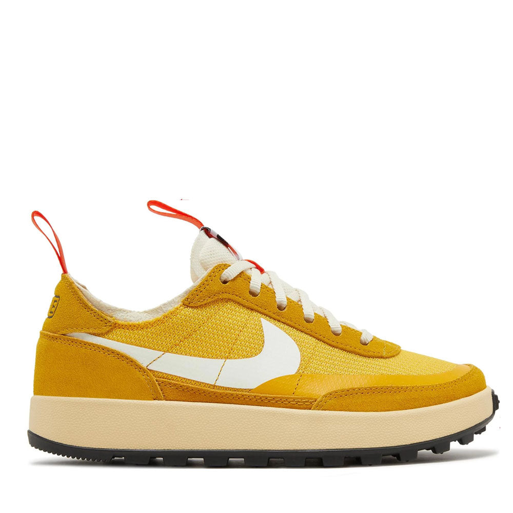 The Tom Sachs x Nike NikeCraft General Purpose Shoe ‘Archive’ features a functional design that aligns with the shoe’s marketing tagline, which cheekily suggests that ‘Creativity is the enemy.’ Based on Sachs’ ongoing research into how ‘our bodies meet the ground,’ the low-top sports a yellow mesh upper with tonal suede overlays and a contrasting white Swoosh. Orange webbing tabs at the tongue and heel assist with easy on and off. The cream-colored rubber midsole packs an EVA wedge for lightweight cushioning, while a black waffle-traction rubber outsole yields optimal grip.