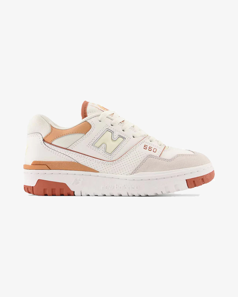 The next colourway to deserve a spot in your shoedrobe is the New Balance 550 White Brown Womens. A multi-textured kick with just the right amount of colour, the upper is crafted from a blend of supple suede, perforated panels and smooth leather.