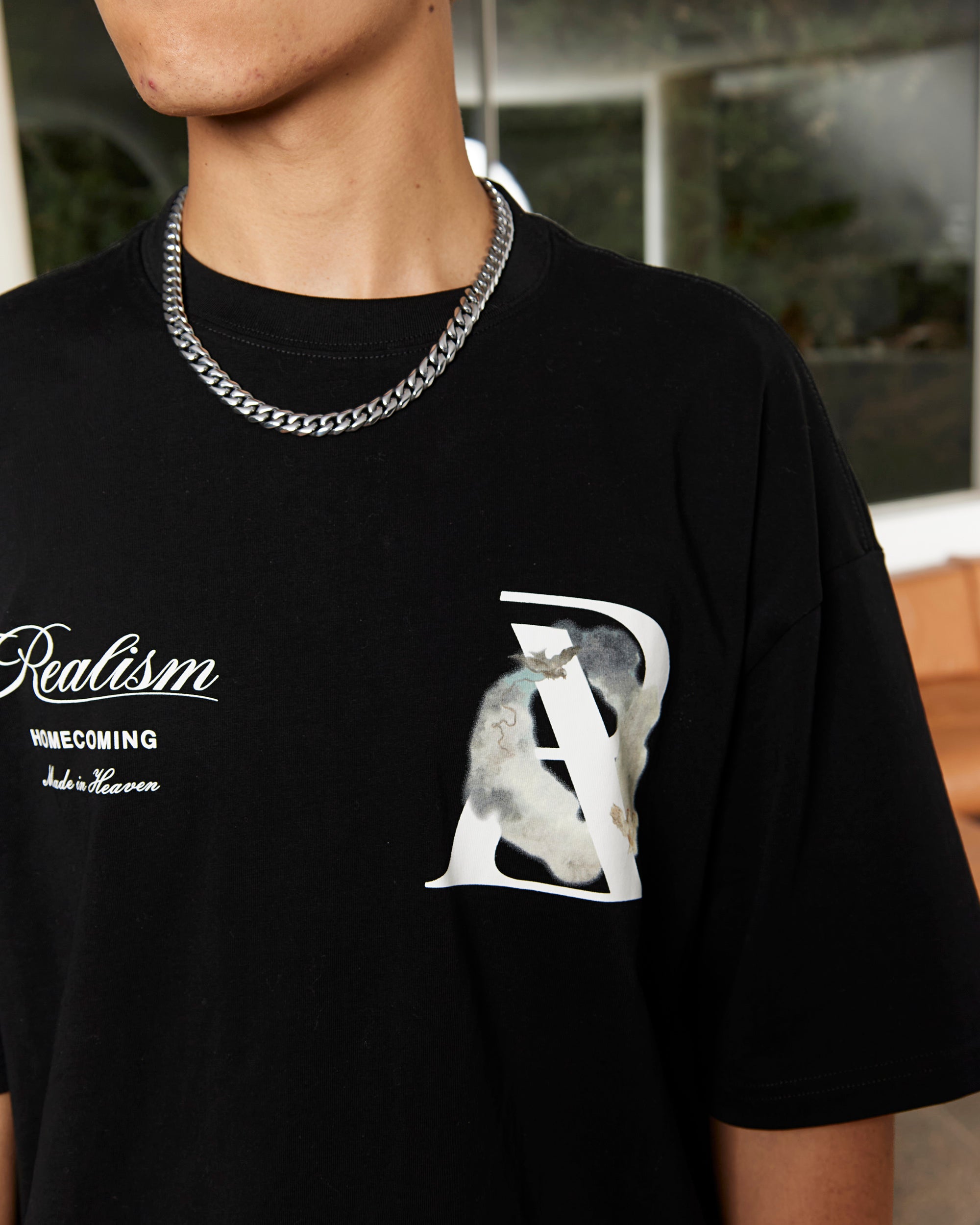 The Halo Tee from the Homecoming Collection features bold chest prints along with an embroidery motif on the nape, top off with a perfect oversize fit to match any cargos or jeans and sneakers.