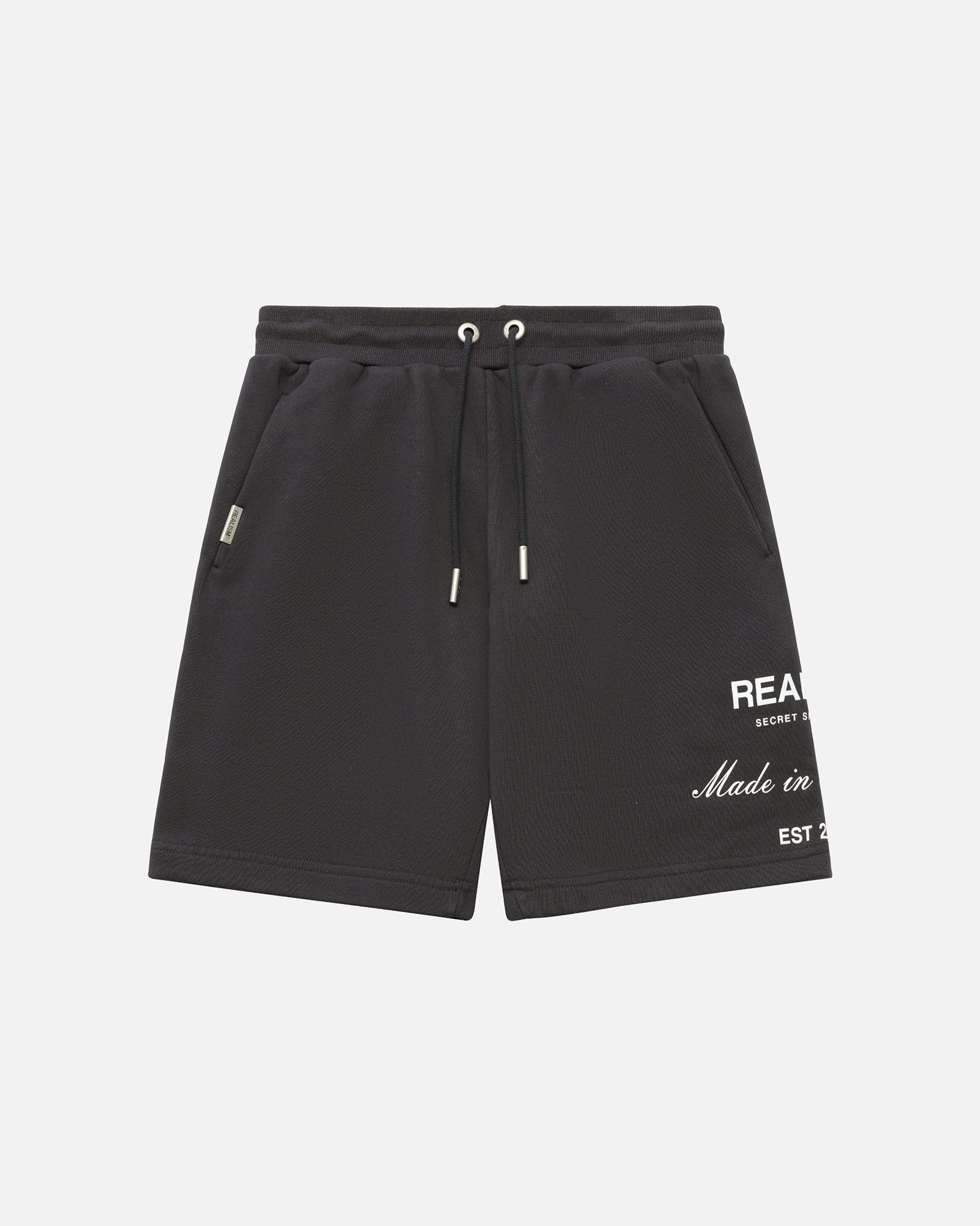 This lounge staple is refreshed with a deluxe signature from the Realism Radiant collection. Made with Realism's signature comfy fleece in a relaxed Asphalt guise, these shorts feature metal accents including custom "R" branded drawstring openings, aglets & tag. An embroidered "R" on the back pocket and thigh print ties together a design that captures the essence of premium loungewear.