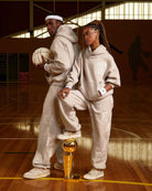 Blessing 185cm and wears L top and bottoms, Tokaya is 164cm and wears S top and S bottoms.