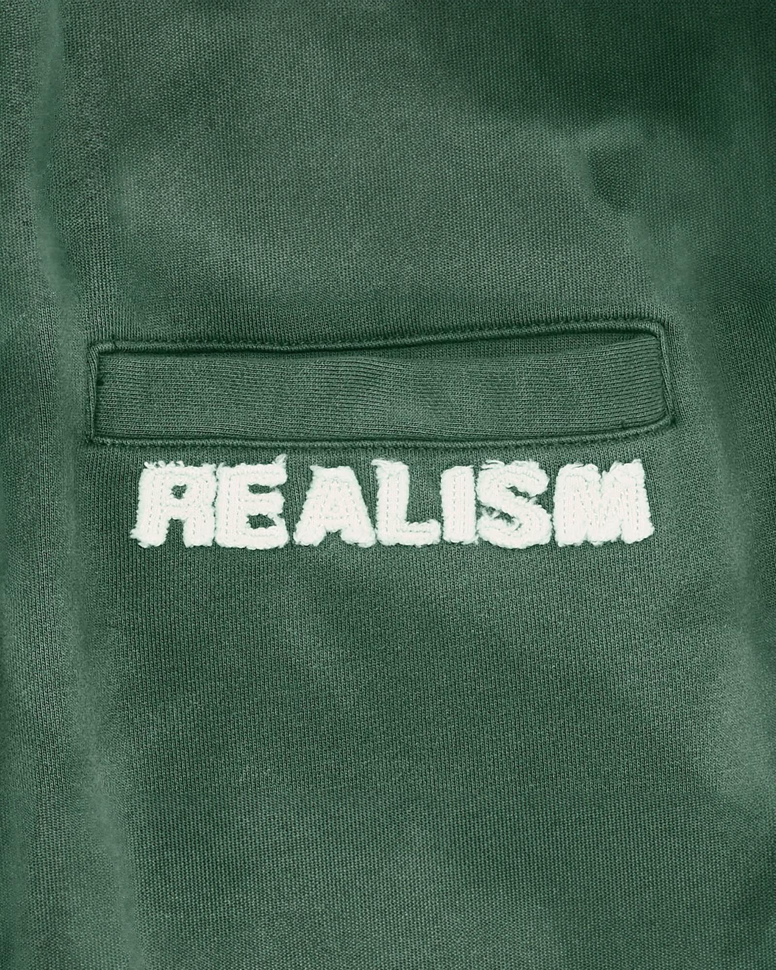 - Patchwork "R" on front & "REALISM" on back