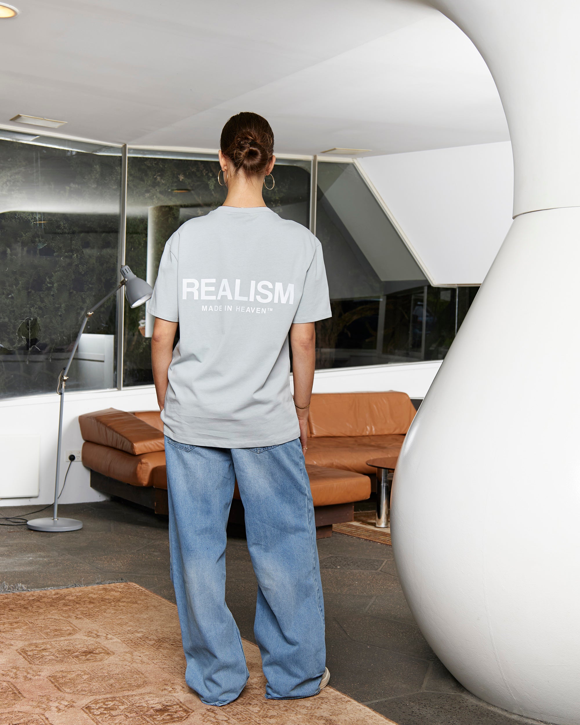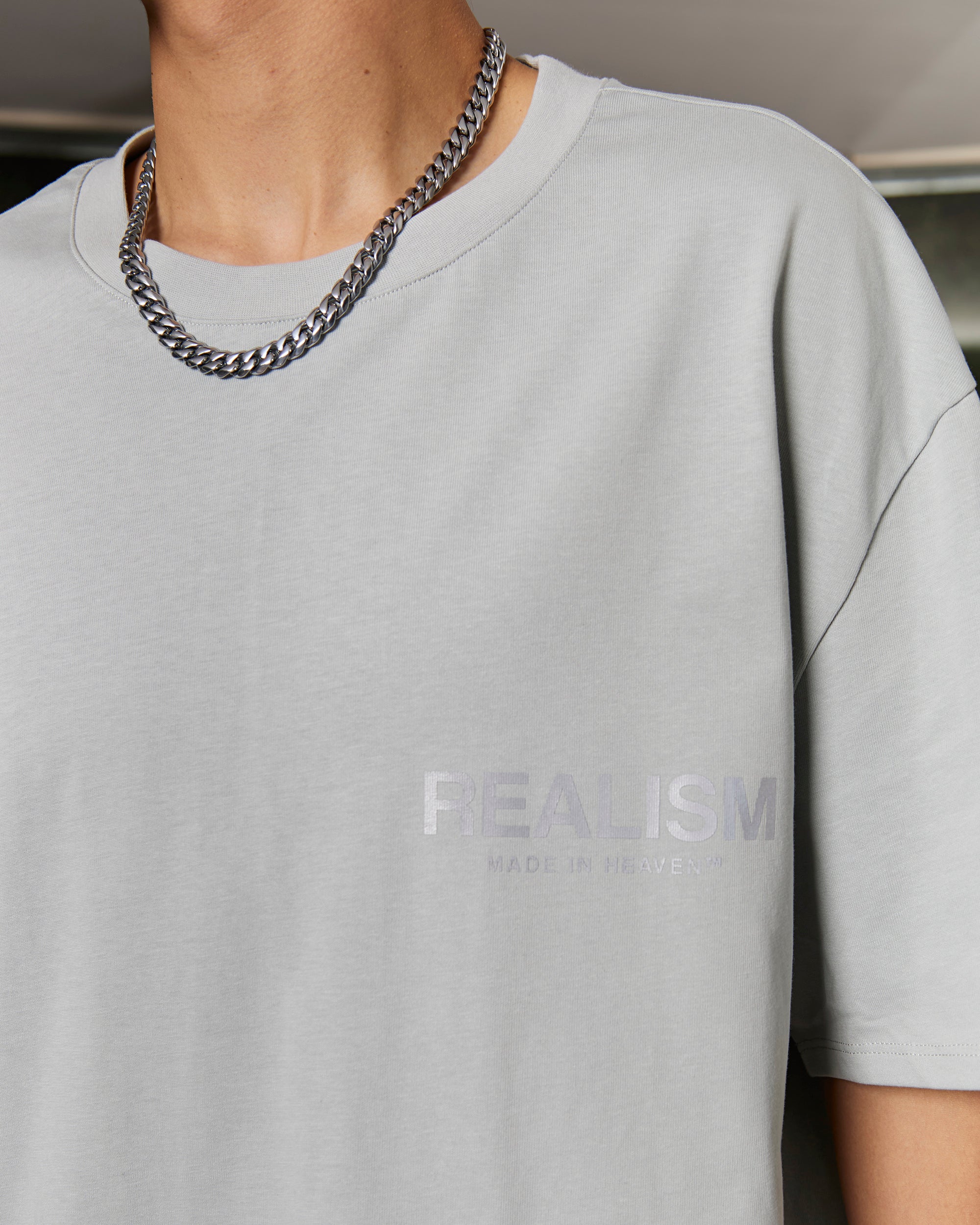 The Unisex Heaven Logo Tee from REALISM features smooth 3M reflective logo adornments on the chest and back, top off with a perfect oversize fit to match any cargos or jeans and sneakers.