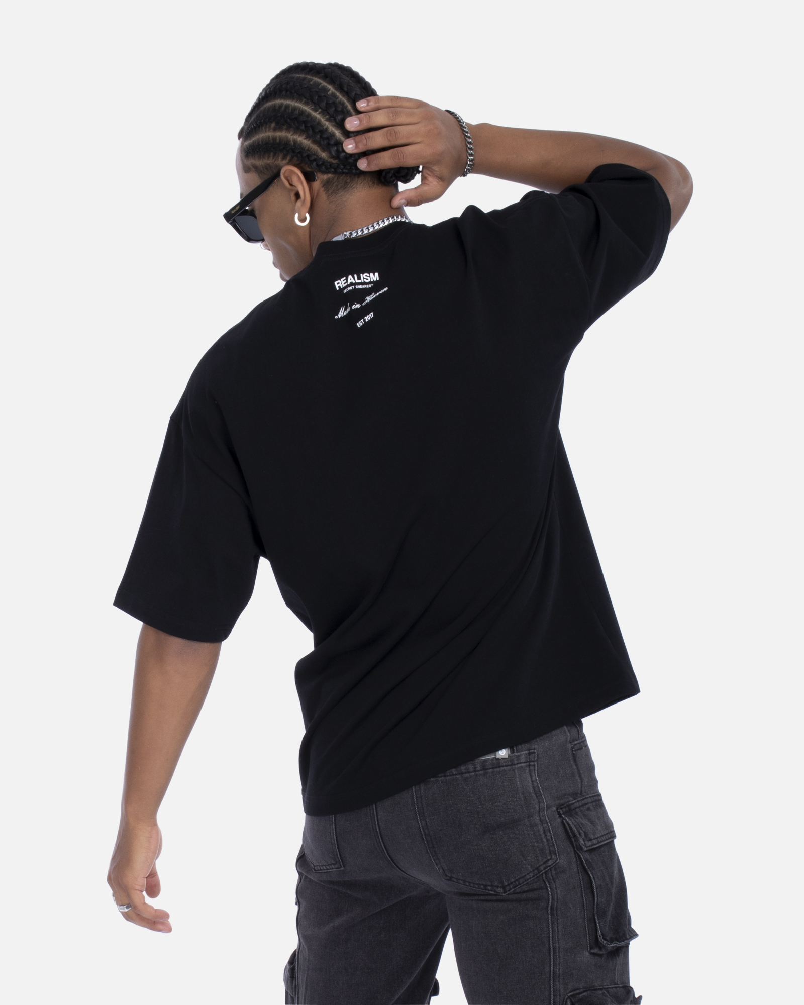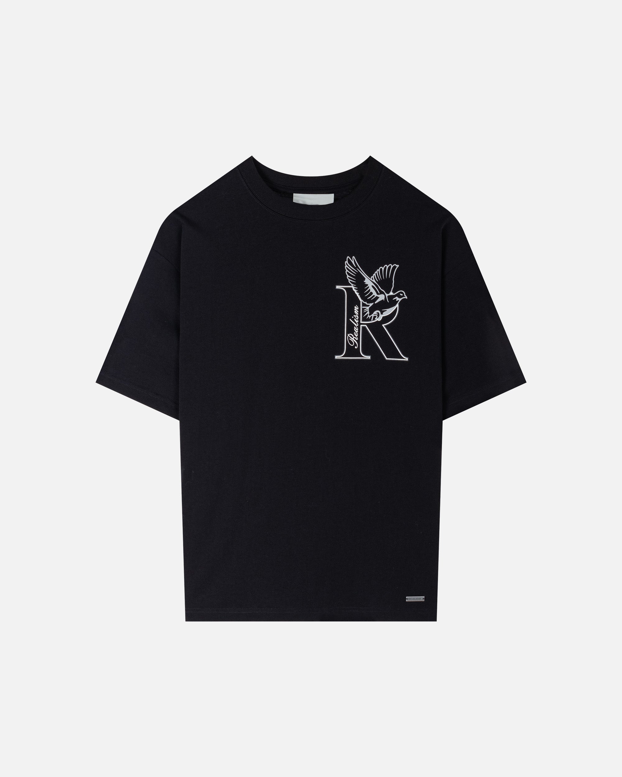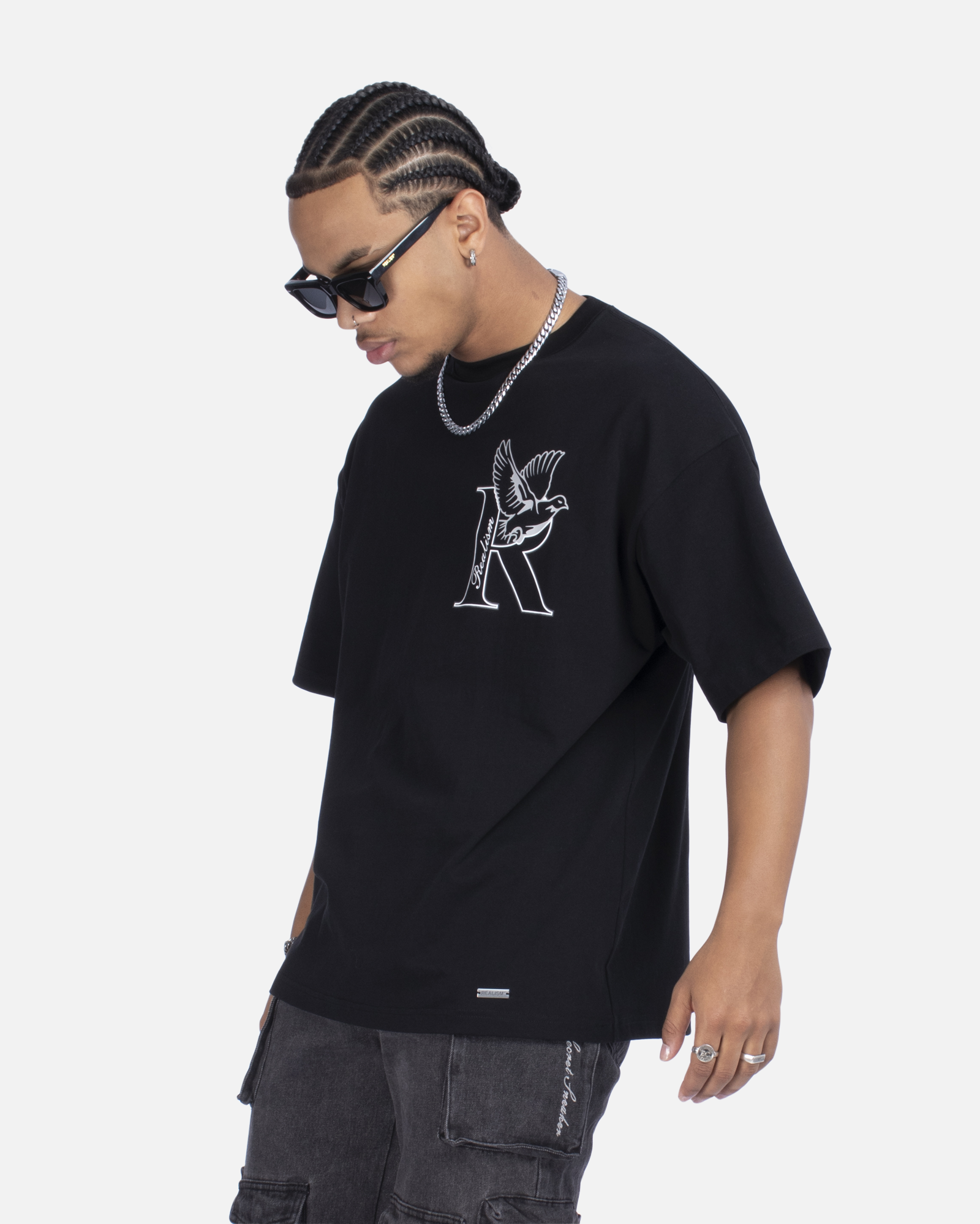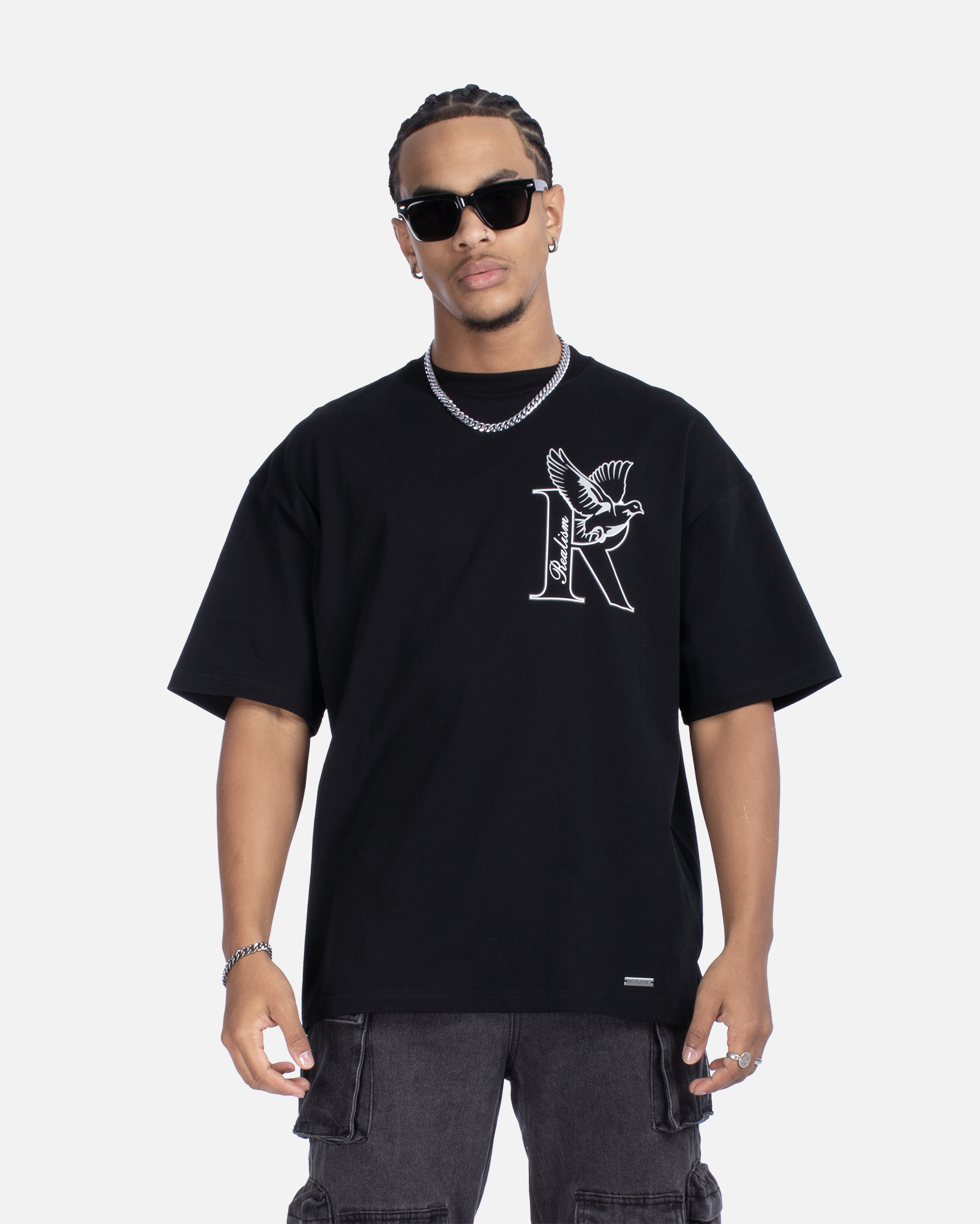 The Dove Logo Tee Black from REALISM features an oversized graphic and a high contrast white logo at the back. Made with a premium combed cotton blend, Layer your outfit with a jacket for the perfect casual streetwear combo.