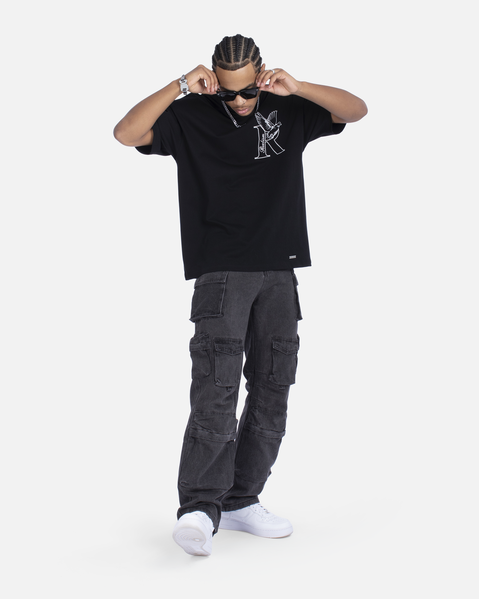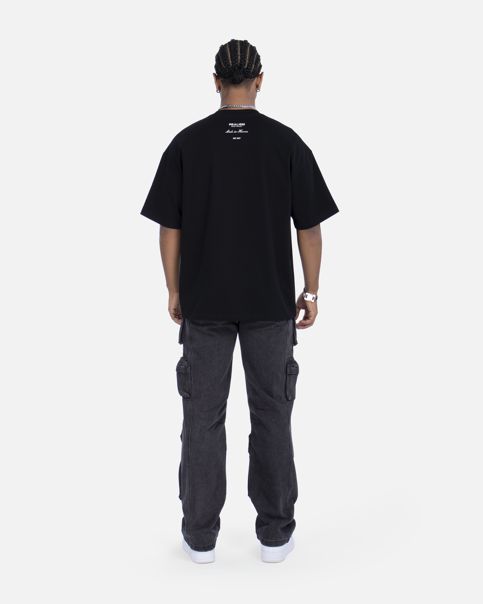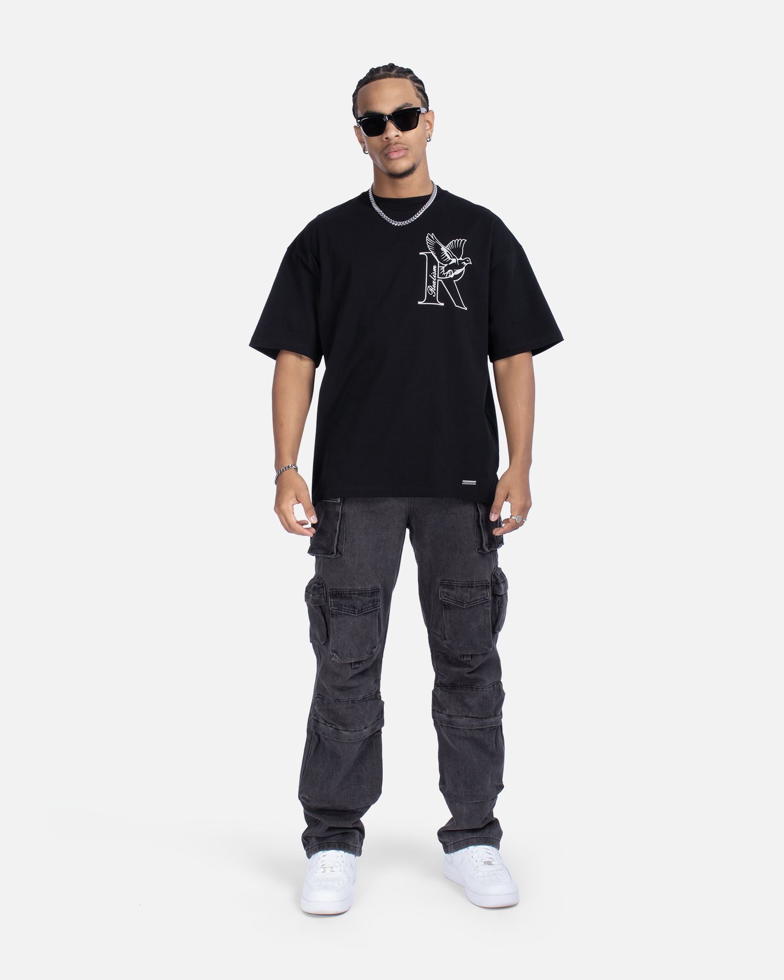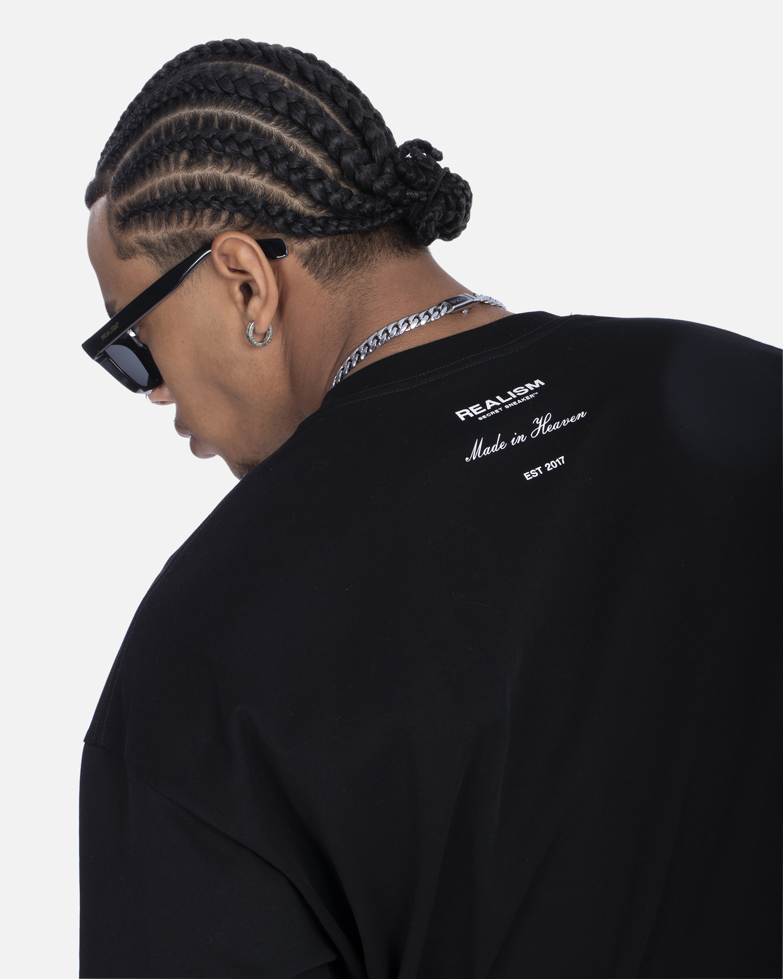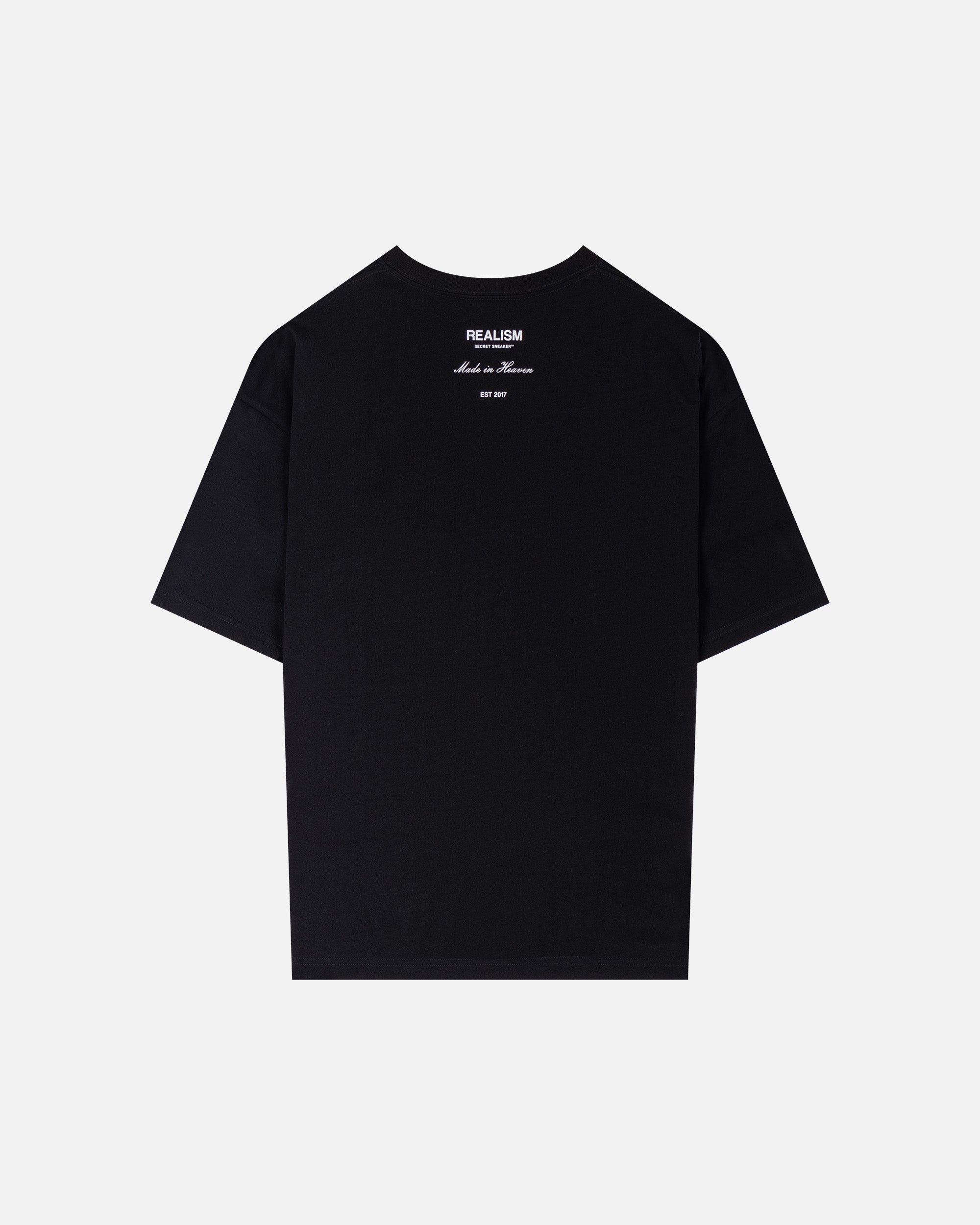 The Dove Logo Tee Black from REALISM features an oversized graphic and a high contrast white logo at the back. Made with a premium combed cotton blend, Layer your outfit with a jacket for the perfect casual streetwear combo.