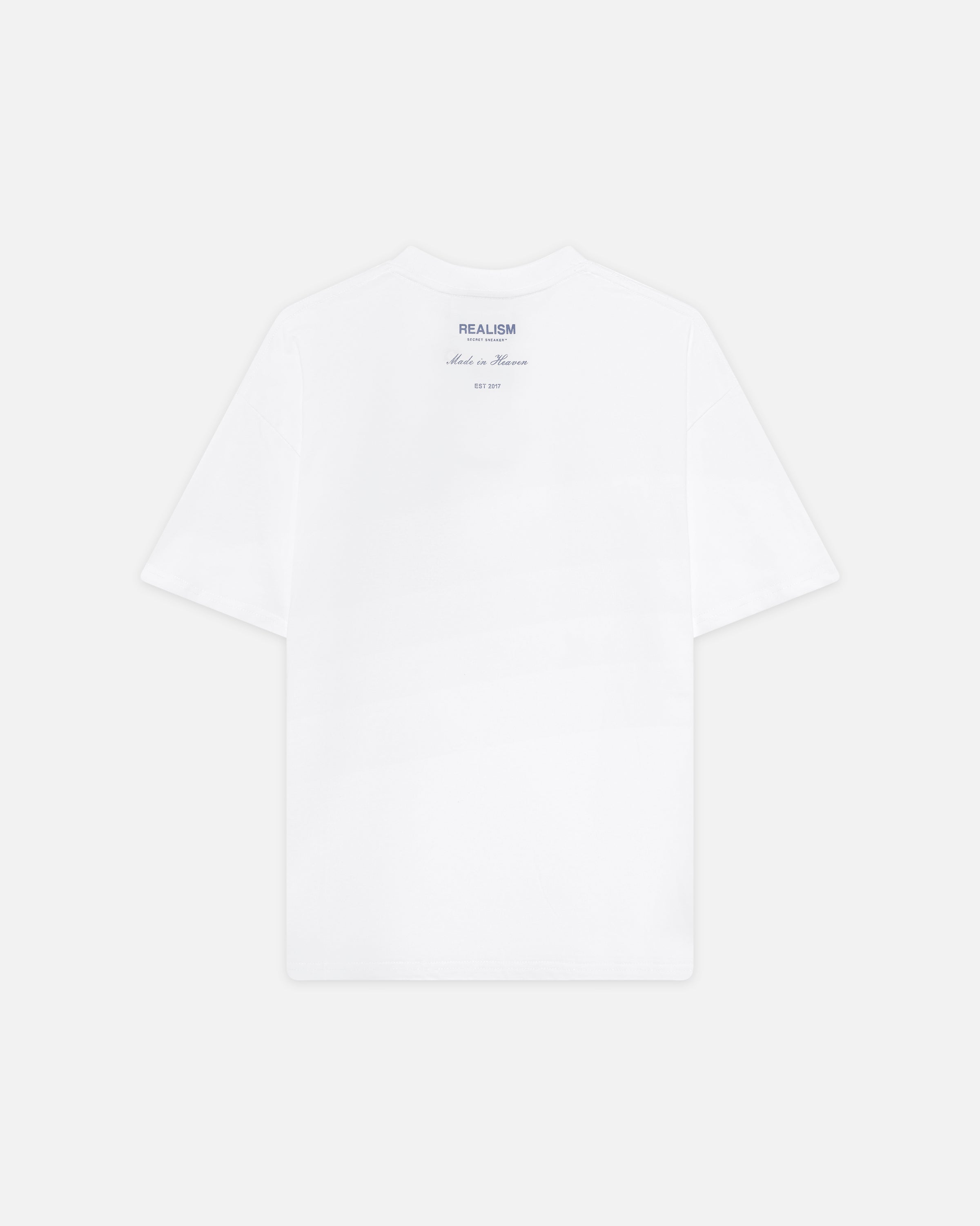 The Dove Logo Tee White from REALISM features an oversized graphic and a high contrast white logo at the back. Made with a premium combed cotton blend, Layer your outfit with a jacket for the perfect casual streetwear combo.