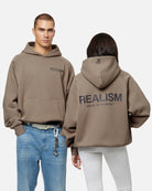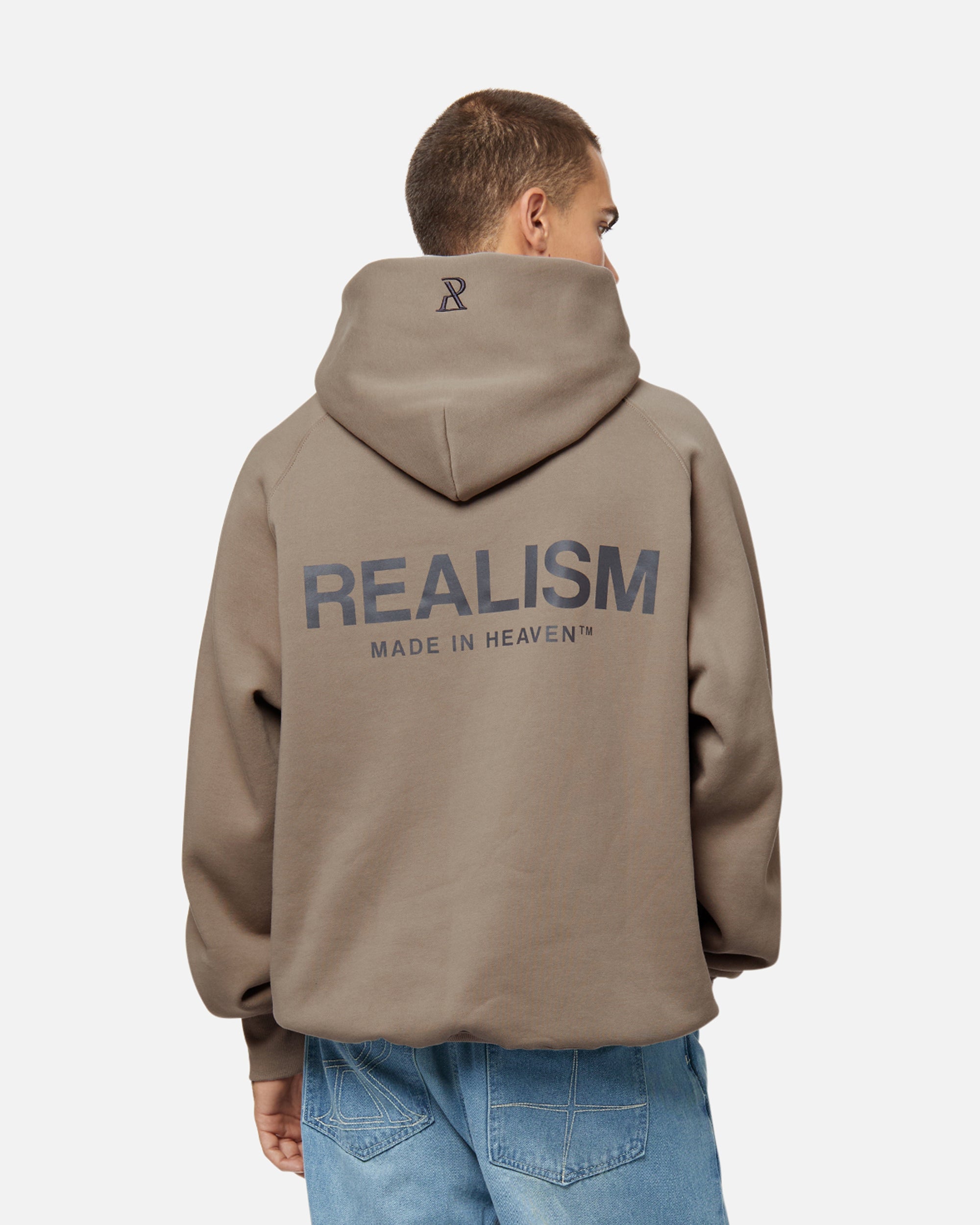 The ultimate hoodie. Premium, comfortable, and designed with purpose. Featuring Realism's signature 350gsm fleece crafted into a raglan, oversized silhouette, this hoodie is accentuated with 3-dimensional reflective applique logos on the front and back. An embroidered "R" logo on the hood and a "Made in Heaven" motif on the right sleeve complete this iconic design.
