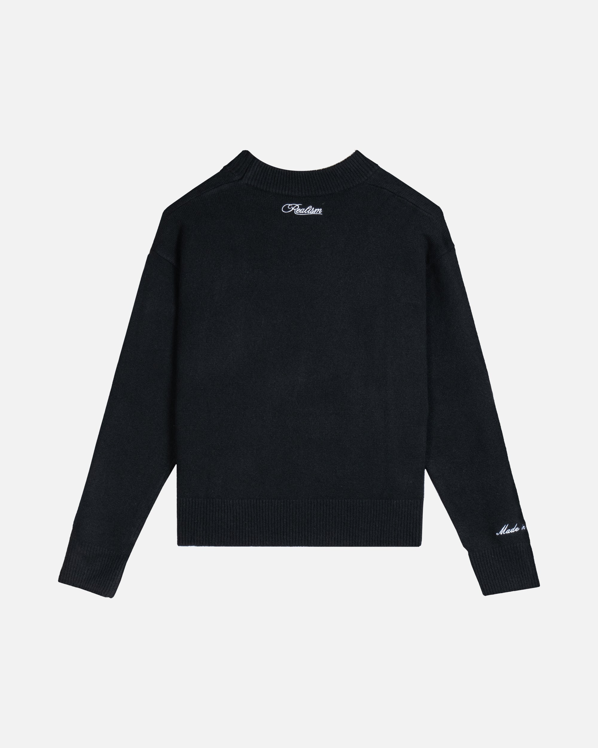 The classic knit crewneck is reworked with Realism's signature touch. Featuring an oversized jacquard "R" emblem and embroidered details over a thick gauge knit, the Radiant Knit Crewneck is a statement in effortless elegance that is just at home lounging about or a night out. A design that exudes composure that relaxation.