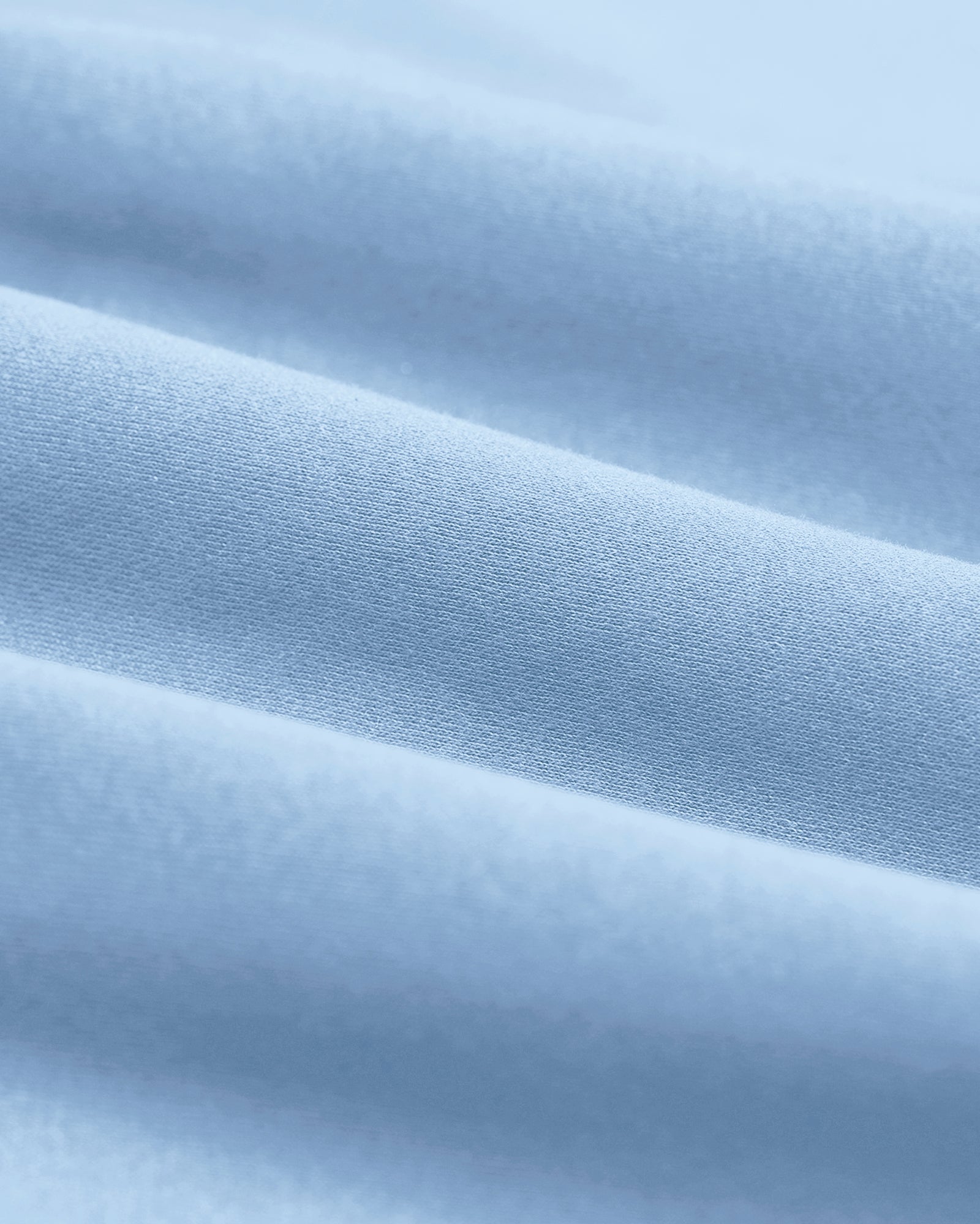 • Baby blue main fabric, metallic and grey silicone / printed / embroidery details