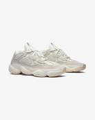 Kanye West and adidas revisit the Yeezy 500, this time in a 'Bone White' colorway. This August 2019 edition follows the silhouette's established, chunky silhouette with a cow suede, premium leather and mesh upper in Off-White tones. As in colorways past, this edition includes reflective piping details and the unmistakable, retro basketball midsole design. adidas adiPRENE+ cushioning pairs underfoot with contoured rubber pods to promote traction.