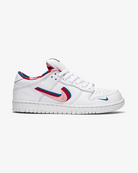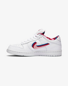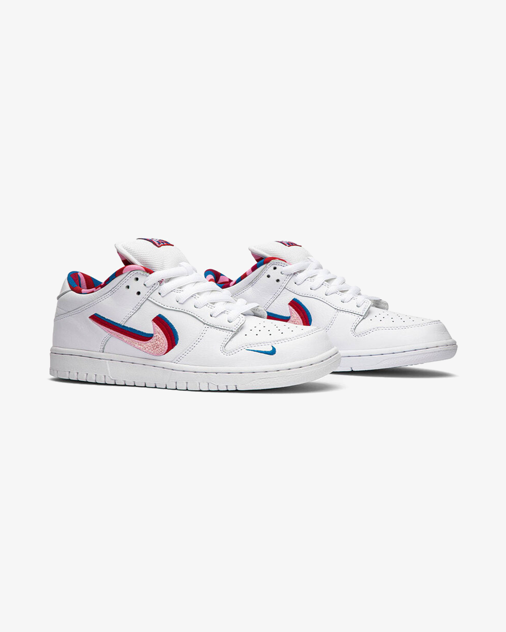 Teaming up with the Dutch artist in July 2019, Nike SB and Parra present a special collaboration of the iconic Dunk Low OG QS. The visual artist's whimsical style is interpreted via multicolored chenille Swooshes on the leather upper and a graphic sockliner. A patterned tongue label and alternating co-branding embroidered on the backstay recognize both entities.