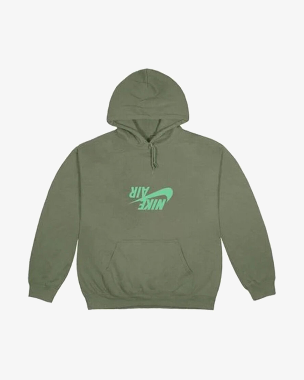The hoodies features upside down Nike branding on the front and overlapping Cactus Jack and Air Jordan logos on the back of the hoodie. The Travis Scott Jordan Cactus Jack Highest Hoodie in Olive released on October 11th, 2019.